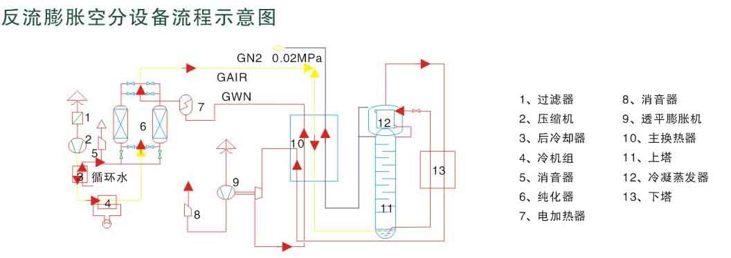 高純氮空分設備采用分子篩吸附、氣體膨脹機膨脹制冷、單塔精餾原理??筛鶕脩粜枰煌螒B(氣態。液態)氮氣的使用,可根據用戶需要不同壓力等級氮氣定制,做到能耗最低,該振生產規模從10Nm3/h到10000Nm3/h(氮氣產量)均可按照用戶需求特殊定制。